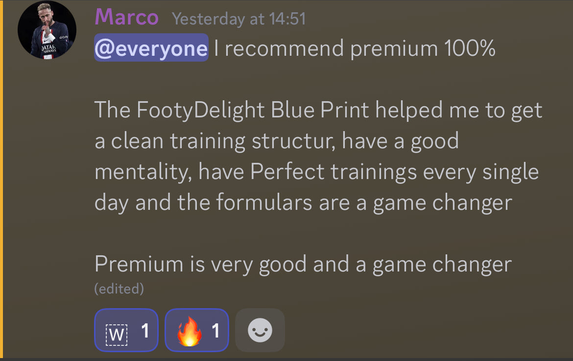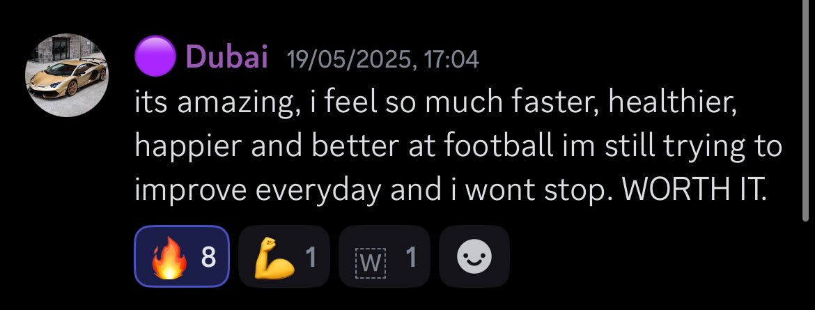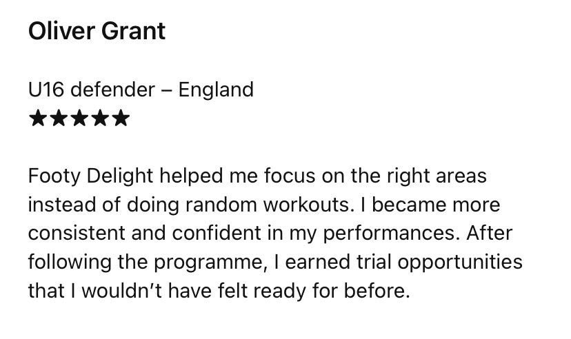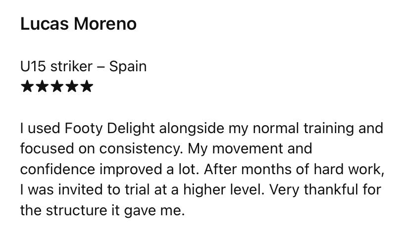 That’s a fair question. FootyDelight isn’t random workouts or motivational content. It’s a structured system used by hundreds of players who’ve improved their physical performance, confidence, and consistency on the pitch. Many parents inside our community have seen clear improvements in speed, strength, and discipline within weeks.