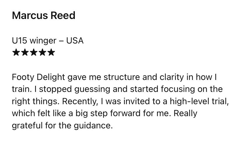 That’s understandable. What makes FootyDelight different is the community and structure. Players aren’t left alone with a PDF. They’re guided, supported, and surrounded by other driven players. Parents often notice better habits, more focus, and a stronger commitment to football.